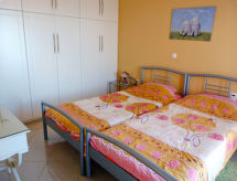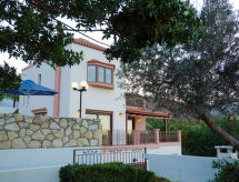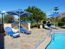 Villa "Amalia", bonita, confortable, individual, rodeada de campos. En el barrio de Aptera, lugar tranquilo, soleado, a 2.1 km del mar, a 2.1 km de la playa. Privado: jardín grande con flores y árboles, terreno con hierba, piscina (30 m2, Disponible por temporada: 01.Ene. - 31.Dic.) con agua de mar y escalera interior. Cambio de sábanas 2 vez por semana. Cambio de toallas 2 veces por semana. Limpieza 2 veces por semana. Aparcamiento junto a la casa. Playa de gravilla "Kalami" 2.1 km. Minigolf 21 km, centro ecuestre 11 km. Atracciones en los alrededores: Aptera Ancient Theatre 4 km, Aptera Ottoman Fortress 5 km, Intzedin Fort 2.5 km, Venizelos Graves 17 km, Chania Old Venetian Harbour 16 km, Limnoupolis Waterpark 20 km. A tener en cuenta: coche recomendable. Adecuado para familias, equipamiento para bebés a demanda (incluido). Grupos de jóvenes sólo bajo petición.Interior