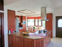 "Amalia", villa 5 habitaciones en 3 plantas. Espacioso y luminoso, con mobiliario confortable y bonito: salón-comedor abierto con mesa de comedor y TV satélite (pantalla plana), CD y DVD. Salida a la terraza. Cocina abierta (horno, lavavajillas, 4 placas de vitrocerámica, microondas, cafetera eléctrica) con pequena mesa de comedor. WC separado. Aire acondicionado. En planta inferior: (escaleras sin barandilla) salón abierto con chimenea y TV satélite (pantalla plana). Salida a la terraza. 1 dorm. con 1 cama doble y TV satélite (pantalla plana). Cocina abierta (horno, 4 placas de vitrocerámica) con mesa de comedor. Ducha/WC. Aire acondicionado. Planta superior: (escaleras sin barandilla) 1 dorm. con 1 cama doble, ducha/WC y TV satélite (pantalla plana). Salida al balcón. 1 dorm. doble con 2 camas y TV satélite (pantalla plana). Salida al balcón. Baño/WC, bañera de hidromasaje. Aire acondicionado. Balcón grande, 2 terrazas grandes cubierta. Barbacoa, tumbonas. Vista bonita al mar y al paisaje. El alojamiento dispone de: lavadora, teléfono, caja fuerte, plancha, secador de pelo. Internet (Wifi, gratis). A tener en cuenta: casa para no fumadores. 1042K123K0343700- Características del alojamiento