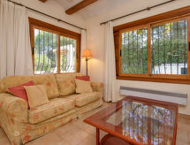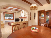 Casa "Villa Ciclamen", bonita, confortable. En el barrio de Cap Marti, a 1.5 km del mar, a 1.5 km de la playa. Privado: jardín (vallado) con césped y árboles, piscina (8 x 4 m, 80 - 180 cm de profundidad, Disponible por temporada: 01.Ene. - 31.Dic.). Aparcamiento en el mismo terreno. Tienda 2.5 km, supermercado, restaurante 600 m, playa de arena "Arenal" 2.5 km, playa de piedras "Cala Blanca" 1.5 km. El propietario no acepta grupos de adolescentes/jóvenes.Interior