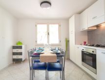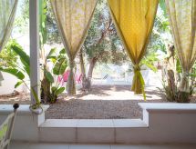 Gallipoli: Villa "Cotriero", agradable. A 12 km del centro, en el distrito Contrada Pizzo, a 50 m del mar, a 50 m de la playa. Comunitario: jardín 700 m2 con plantas, piscina (11 x 6 m, 220 - 140 cm de profundidad, Disponible por temporada: 01.Abr. - 31.Oct.). Ducha exterior, muebles de jardín, barbacoa, mantenimiento de la piscina a través del propietario/jardinero. En el inmueble: solarium. Posibilidad de aparcamiento en la calle. Tienda 1.5 km, tienda de comestibles 1.5 km, supermercado 3 km, restaurante 2 km, bar 1.5 km, estación de tren "Gallipoli" 13 km. Atracciones en los alrededores: Punta Pizzo 2.5 km, Spiaggia della Suina 6 km, Otranto 50 km, Santa Maria di Leuca 40 km, Castro 45 km, Lecce 50 km. A tener en cuenta: coche recomendable.Interior