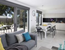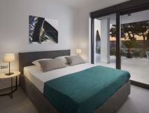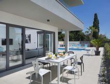 Villa "Villa Fasana", moderna del año 2016. 5 apartamentos en la propiedad. A 150 m del centro de Fažana, lugar tranquilo, soleado, a 50 m del mar, a 50 m de la playa. Comunitario: terreno (vallado). Privado: terreno 300 m2 (vallada), jardín pequeño, piscina rectangular (6 x 4 m, 140 cm de profundidad, Disponible por temporada: 30.Mar. - 05.Oct.) con escalera interior. Ducha exterior, barbacoa. En el inmueble: acceso a internet. Aparcamiento junto a la casa en el mismo terreno. Tienda 300 m, supermercado 1 km, restaurante 150 m, playa de gravilla, playa de cemento 50 m. Campo de golf 2 km, escuela de surf 2 km, tenis 1 km, centro ecuestre 5 km, rutas de senderismo desde la casa 50 m, caminos para bicicletas 100 m. Atracciones en los alrededores: NP Brijuni 500 m. El propietario no acepta grupos de adolescentes/jóvenes.Interior