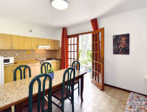 Apartamento de 3 habitaciones 45 m2. Con mobiliario sencillo y funcional: salón-dormitorio con 1 sofá-cama doble, mesa de comedor, rincón cocina y TV. Salida al balcón, a la terraza. 1 dorm. doble. 1 dorm. con 2 camas. Cocina abierta (Estufa de gas, 3 fuegos, microondas, congelador, cafetera eléctrica). Ducha/WC. Calefacción eléctrica, aire acondicionado. Calefacción no en todas las habitaciones. Balcón o terraza parcialmente cubierta. Muebles de balcón. El alojamiento dispone de: caja fuerte, trona, cuna. Plaza de aparcamiento (cubierto, 1 coche) junto a la casa. A tener en cuenta: 1 mascota / perro. Entrada privada.- Instalaciones