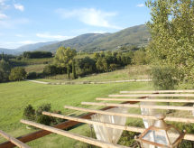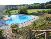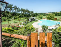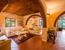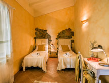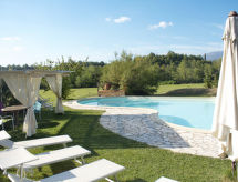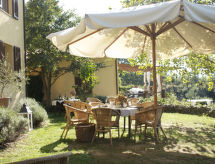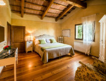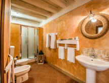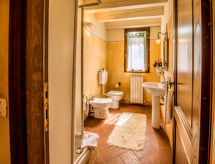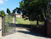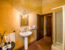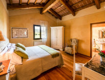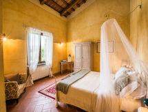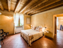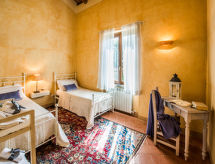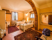 En viñedo casa señorial "Fattoria di Romignano", 280 m s.n. m., amplia, rodead prados y viñedos. 3 casas en la residencia. Alojamiento compuesto de edificio principal y edificio anexo, a 3.5 km del centro de San Giustino, a 7 km del centro de Terranuova Bracciolini, a 22 km del centro de Arezzo, lugar tranquilo, en el campo. Comunitario: terreno 30 ha, jardín en diferentes niveles (no está vallado) con plantas y árboles, pradera. Privado: terreno 1'000 m2, jardín en diferentes niveles (no está vallado) con plantas, pradera, piscina en forma de riñon (100 m2, 140 - 160 cm de profundidad, Disponible por temporada: 01.May. - 25.Sep.). Voleibol, porche (70 m2), terraza (40 m2), muebles de jardín, barbacoa. Acceso durante 600 m hasta el terreno (camino de tierra). Aparcamiento en el mismo terreno. Supermercado 3.5 km, estación de tren "Montevarchi" 15 km. Venta local de productos de granja. A tener en cuenta: el propietario vive en el mismo terreno.Interior
