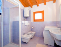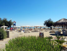 Resort "Villaggio A Mare", amplio, bonito de 4 plantas. 80 casas en el complejo. 130 apartamentos en la residencia. En el barrio de Lido Altanea, a 4 km del centro de Caorle, a 1.5 km del centro de Porto Santa Margherita, a 75 km del centro de Venezia, a 500 m del mar. Comunitario: terreno 45'000 m2 (vallado), jardín, cuidado con césped y plantas, piscina en forma de riñon (700 m2, Disponible por temporada: 21.Abr. - 30.Sep.). Piscina para niños, piscina de hidromasaje, parque infantil. En el complejo: recepción, restaurante, bar, bar, Wifi, tienda, quiosco. Supermercado 600 m, estación de tren "San Donà (Milano-Venezia-Triest)" 28 km, playa de arena 500 m, piscina cubierta 400 m. Campo de golf (18 hoyos) 4 km. El propietario no acepta grupos de adolescentes/jóvenes. Entrada gratis a la piscina cubierta pública (400 m). 2 tumbonas y 1 parasol por apartamento / casa en la piscina. Servicio de playa: aprox. entre 15.5-15.9. 2 tumbonas y 1 parasol por apartamento / casa están incluidos en el precio del alquiler.Interior