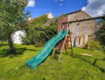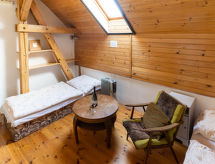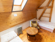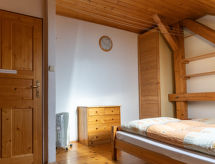 Casa 5 habitaciones en 2 plantas. Con mobiliario sencillo y agradable: salón-comedor con mesa de comedor y TV. 1 dorm. con 1 cama, 1 cama doble, 1 plegatín y chiminea nórdica. Pequeña cocina (4 fogones, horno, tostadora, hervidor de agua eléctrico, microondas, cafetera eléctrica). Ducha, WC separado. Planta superior 2: 1 dorm., abuhardillado con 2 camas y 1 x 2 literas. 1 dorm., abuhardillado con 3 camas. 1 dorm., abuhardillado con 2 camas. Ducha/WC. Calefacción eléctrica, calefacción de leña. El alojamiento dispone de: Internet (Wifi, gratis). A tener en cuenta: 1 mascota / perro. Extintores.- Instalaciones