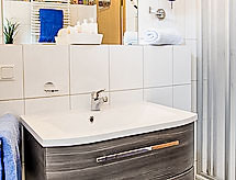 "Witthuus-Baltrum", apartamento de 2 habitaciones 42 m2, en la planta baja. Con mobiliario confortable y de estilo: salón-comedor 20 m2 con TV satélite (pantalla plana), DVD. Salida a la terraza. 1 dorm. 11 m2 con 1 cama doble (2 x 90 cm, 200 cm de longitud). Rincón-cocina (horno, lavavajillas, 4 placas de vitrocerámica, tostadora, hervidor de agua eléctrico, microondas, cafetera eléctrica). Ducha/WC. Calefacción por suelo. Terraza 11 m2, orientación suroeste. Muebles de terraza, barbacoa. El alojamiento dispone de: trona. Internet (Wifi, gratis). Plaza de aparcamiento junto a la casa. A tener en cuenta: apartamento para no fumadores.- Instalaciones