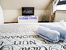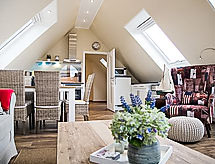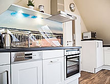 "Witthuus-Wangerooge", apartamento de 3 habitaciones 75 m2, en el ático. Abuhardillado, con mobiliario muy confortable y de estilo: salón-comedor 30 m2 con TV satélite (pantalla plana), radio, CD y DVD. 1 dorm. 13 m2 con 1 cama doble (2 x 90 cm, 200 cm de longitud), TV satélite (pantalla plana). 1 dorm. 13 m2 con 2 camas (90 cm, 200 cm de longitud), TV satélite (pantalla plana). Rincón-cocina (horno, lavavajillas, 4 Placas de inducción, tostadora, hervidor de agua eléctrico, microondas, cafetera eléctrica). Ducha/WC. Calefacción por suelo. Vista bonita a la localidad. El alojamiento dispone de: trona. Internet (Wifi, gratis). Plaza de aparcamiento junto a la casa. A tener en cuenta: apartamento para no fumadores.- Instalaciones