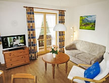 "Wohnung 6 (am Sonneneck)", apartamento de 2 habitaciones 50 m2 en el 1° piso. Con mobiliario bonito y agradable: salón-comedor con 1 sofá-cama doble (160 cm, 200 cm de longitud), TV cable (pantalla plana), radio. Salida al balcón. 1 dorm. doble. Salida al balcón. Rincón-cocina (lavavajillas, 4 placas de vitrocerámica, cafetera eléctrica, microondas/grill). Ducha/WC. Muebles de balcón. El alojamiento dispone de: teléfono (extra), trona, cuna, secador de pelo. Internet (Wifi, gratis). A tener en cuenta: apartamento para no fumadores. Detector de humo.- Instalaciones