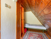 Casa de campo "Zhorska". En la periferia, lugar tranquilo, junto al bosque, a 300 m del río. Privado: jardín 500 m2 (vallado) con césped y flores. Terraza-jardín, muebles de jardín, barbacoa, lugar para hoguera, aparcamiento en el mismo terreno. Tienda de comestibles, restaurante, parada de autobús, estación de tren 500 m, piscina 300 m. Posibilidad de bañarse en el río Luznice a 300 m.Interior