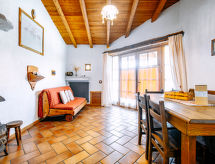"Red", 2-huoneen huoneisto, 51 m2, sisääntulokerroksessa. Viihtyisästi ja paljon puuta sisustettu: olo/makuuhuone, 1 vuodesohva kahdelle, ruokailunurkkaus ja TV. 1 kahden hengen huone. Avoin keittiö (uuni, 4 keraaminen keittotaso, vedenkeitin, mikroaaltouuni, pakastin, kahvinkeitin). Uloskäynti terassille. Suihku/WC. Öljylämmitys. Terassi katettu. Terassikalusteita, lepotuoleja. Panoraamanäkymä vuorille ja laaksoon. Käytettävissä: pesukone, syöttötuoli, lastensänky alle 2 vuotiaalle (lisämaksu). Internet ( Langaton LAN [WLAN] , ilmainen). Huomioitavaa: savuton huoneisto. Enintään 3 lemmikkiä/koiraa sallittu. Oma sisäänkäynti. Ei pakollisia lisäkuluja paikan päällä lukuunottamatta paikallisveroa. Liinavaatteet, pyyhkeet, loppusiivous ja energiakulut sisältyvät.- Laitteet