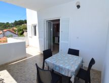 "Buda (HVR215)", 2-huoneen huoneisto, 35 m2, korotetussa sisääntulokerroksessa. Olo/ruokailuhuone, 1 vuodesohva kahdelle ja satelliitti TV. Uloskäynti parvekkeelle. 1 huone, 1 parisänky. Avoin keittiö (4 keittolevyä, uuni, kahvinkeitin). Suihku/WC. Parvekekalusteita, loggia (katos). Käytettävissä: Internet ( Langaton LAN [WLAN] , ilmainen). Pysäköintipaikka (1 auto). Enintään 1 lemmikki/koira sallittu. Majoittujia maksimissaan: 3 aikuista ja 1 alle 12-vuotias lapsi.- Laitteet