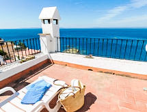 "Los Geranios", 3-huoneen rivitalo, 65 m2, 3 tasossa, suunta lounaaseen. Vaalea, kauniisti ja tyylikkäästi sisustettu: olo/ruokailuhuone, ruokapöytä ja satelliitti TV. Uloskäynti terassille, suunta etelään ja suunta länteen. Avoin keittiö (uuni, 4 keraaminen keittotaso, leivänpaahdin, vedenkeitin, mikroaaltouuni, kahvinkeitin), tarjoiluaukko. Ei lämmitysmahdollisuutta. Alemmassa kerroksessa: 1 huone, 1 kapea parisänky (150 cm), suihku/WC. 1 huone, 1 kapea parisänky (150 cm). Uloskäynti parvekkeelle, suunta etelään ja suunta länteen. Suihku/WC. Pieni terassi 15 m2, etelään ja länteen. Terassikalusteita. Ihastuttava panoraamanäkymä merelle. Käytettävissä: pesukone. Internet ( Langaton LAN [WLAN] , ilmainen). Pysäköintipaikka. Huomioitavaa: TV vain ES, DE, FR. HUTG037356- Laitteet