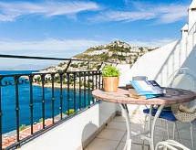 Canyelles Petites: Kaunis, kodikas rivitalo "Casas Blancas", 2 kerroksinen, toispuolinen lisäsiipi. Residenssissä 13 taloa. Canyelles Petites, paikkakunnalla, 3.5 km keskustasta Roses, rauhallinen, aurinkoinen, korkea sijainti rinteessä, huvila-alueella, 850 m meren rannalta, 850 m rannalta, suunta lounaaseen. Yhteiskäytössä: uima-allas munuaisen muotoinen (14 x 5 m, syvyys 140 - 180 cm, käytössä kausiluontoisesti: 01.Huh. - 31.Lok. uima-altaan aukioloajat: 09:00-21:00). Erittäin jyrkkä ajotie. Portaat (36 askelmaa) talolle. Kauppa, ruokakauppa, supermarket, ravintola, baari, kahvila, bussipysäkki 850 m, hiekkaranta "Canyelles Petites" 850 m. Venesatama 3 km, venesatama 3.5 km, golfkenttä (18 reikää) 20 km, surffauskoulu 3.5 km, purjehduskoulu 3.5 km, tennis 5 km, ratsastustalli 10 km. Lähettyvillä nähtävyyksiä: Parque Acuático Aquabrava Roses 6 km, Skydive y túnel del viento Empuriabrava 11 km, Cadaqués 18 km, Castillo y casino de Perelada 25 km, Monasterio de Sant Pere de Rodes 24 km, Museo Dalí Figueres 24 km. Huomioitavaa: auto tarpeellinen, ei hissiä. Omistaja ei hyväksy nuorisoryhmiä. Vartioitu residenssi. Naapuruston rauhaa kunnioitettava.Interior
