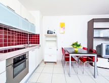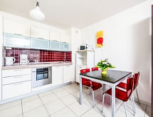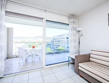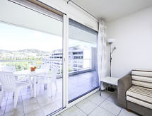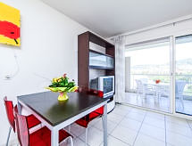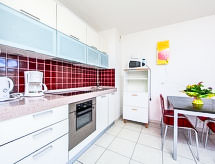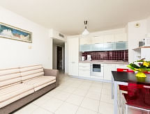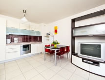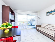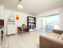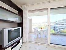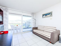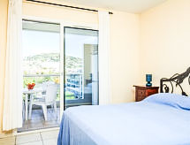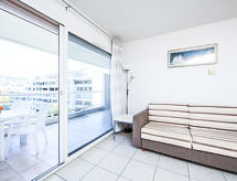 2-huoneen huoneisto, 45 m2, 5. kerroksessa. Mukavasti ja kauniisti sisustettu: olo/ruokailuhuone, 1 vuodesohva kahdelle (140 cm, pituus 190 cm), satelliitti TV, DVD ja ilmastointi. Uloskäynti terassille. 1 huone, 1 kapea parisänky (160 cm, pituus 200 cm), ilmastointi. Uloskäynti terassille. Keittiönurkkaus (4 keittolevyä, uuni, astianpesukone, mikroaaltouuni, pakastin). Kylpy/WC. Sähkölämmitys. Terassi 16 m2, luoteeseen. Terassikalusteita. Käytettävissä: pesukone. Internet ( Langaton LAN [WLAN] , lisämaksu). Autotalli n:o 30, korkeus 220 cm, leveys 220 cm. Huomioitavaa: savuhälytin. 06029004102AK- Ominaisuudet majoitus