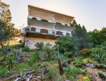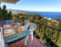 3-huoneen huoneisto kahdessa tasossa, 60 m2, 1. kerroksessa. Käytännöllisesti sisustettu: olo/ruokailuhuone, 20 m2, TV, litteänäyttö ja DVD. Keittiö (uuni). Yläkerrassa: 1 huone, 1 kapea parisänky. 1 huone, 2 vuodetta. Kylpy/WC. Terassi 12 m2. Terassikalusteita. Erittäin kaunis panoraamanäkymä merelle. Käytettävissä: pesukone. Huomioitavaa: enintään 1 lemmikki/koira sallittu. TV vain ES, FR. HUTG010925- Laitteet