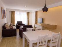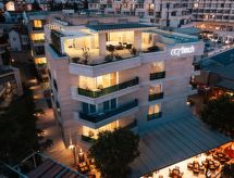Pieni kerrostalo "City Beach Apartments", rakennusvuosi 2020. Keskustassa, 500 m keskustasta Makarska, rauhallinen, aurinkoinen sijainti, 10 m meren rannalta, 10 m rannalta. Talossa: vastaanotto, Langaton LAN [WLAN], pesukone, kuivausrumpu (yhteiskäytössä, lisämaksu). Pysäköintipaikka (lisämaksu) talon luona tontilla. Supermarket 400 m, ravintola, pikkukiviranta 10 m. Huomioitavaa: lentokenttä 97 km rakennukselta.Interior