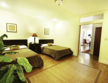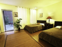 2-huoneen huoneisto, 75 m2, sisääntulokerroksessa. Mukavasti sisustettu: olo/ruokailuhuone, 1 vuodesohva kahdelle, kaapeli TV ja litteänäyttö. 1 huone, 2 kapeaa parisänkyä (160 cm), kaapeli TV (litteänäyttö). Uloskäynti puutarhaistumapaikalle. Keittiönurkkaus (2 keittolevyä, pienoisuuni, mikroaaltouuni). Kylpy/WC. Käytettävissä: pesukone, kuivausrumpu. Internet ( Langaton LAN [WLAN] , ilmainen). Soveltuu perheille.- Laitteet