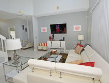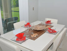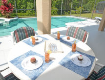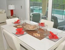 8-huoneen talo, 280 m2, 2 tasossa. Mukavasti ja hyvällä maulla sisustettu: olo/ruokailuhuone, ruokapöytä ja TV. Uloskäynti uima-altaalle. 2 huonetta, kaikissa huoneissa, 2 parisänkyä. Olohuone, TV. Avoin keittiö (uuni, astianpesukone, mikroaaltouuni, pakastin), ruokapöytä. Suihku/WC. Ilmastointilaite. Yläkerrassa: 1 huone, 1 parisänky ja kylpy/suihku/WC. 1 huone, 1 parisänky. 2 huonetta, kaikissa huoneissa 2 vuodetta. Käytettävissä: pesukone, kuivausrumpu. Internet ( Langaton LAN [WLAN] , ilmainen).- Aktiviteetit lähistöllä
