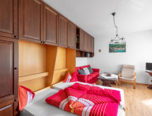 2-huoneen huoneisto, 42 m2, sisääntulokerroksessa. Kohde soveltuu 2 aikuiselle + 2 lapselle. Yksinkertaisesti ja viihtyisästi sisustettu: olo/makuuhuone, 2 seinältä alaslaskettavaa sänkyä (90 cm, pituus 200 cm), ruokailunurkkaus ja kaapeli TV (litteänäyttö), radio. Uloskäynti loggialle. Alkovi, 1 x 2 kerrossänky. Avoin keittiö sisäänkäynnin yhteydessä (4 keittolevyä, uuni). Kylpy/WC. Parveke, etelään ja, itään. Parvekekalusteita. Osittainen näkymä maaseudulle. Käytettävissä: Internet ( Langaton LAN [WLAN] , ilmainen). Huomioitavaa: savuhälytin. 50408-000602-2021- Laitteet