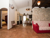 "Domus Incantada", 3-huoneen talo, 80 m2. Osittain peruskorjattu vuonna 2018, hyvällä maulla ja viihtyisästi sisustettu: avoin olo/ruokailuhuone, avotakka ja satelliitti TV (litteänäyttö). Uloskäynti puutarhaistumapaikalle. 1 kahden hengen huone. Avoin parvi, 1 parisänky. Avoin keittiö (uuni, astianpesukone, 4 induktioliesi, mikroaaltouuni, kahvinkeitin). Uloskäynti puutarhaan. Suihku/bidet/WC, erillinen WC. Lämmitys (lisämaksu). Lämmitys on käytettävissä ainoastaan alkaen 15.10. päättyen 15.04. Mukava maalaistyylinen kalustus. Iso puutarhaistumapaikka 60 m2, iso puutarha. Terassikalusteita, puutarhagrilli, lepotuoleja. Kaunis näkymä vuorille, maaseudulle ja paikkakunnalle. Käytettävissä: pesukone, silitysrauta, hiustenkuivaaja. Internet ( Langaton LAN [WLAN] , ilmainen). Pysäköintipaikka (aidattu). Soveltuu perheille. 1 lemmikki/koira sallittu.- Laitteet