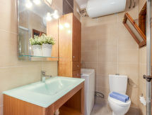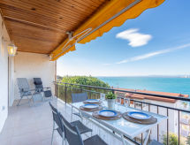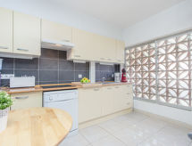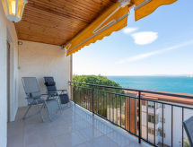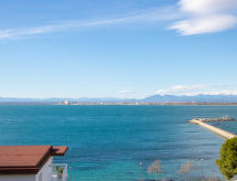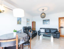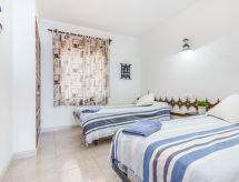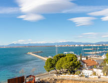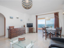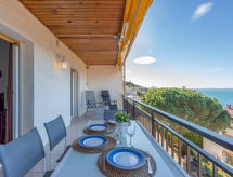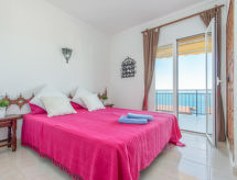 3-huoneen huoneisto, 70 m2, suunta lounaaseen. Avara ja vaalea, peruskorjattu, mukavasti ja viihtyisästi sisustettu: olo/ruokailuhuone, 22 m2, satelliitti TV, TV, ilmastointi ja ilmalämmitys. Uloskäynti terassille, suunta etelään ja suunta länteen. 10 m2, 1 huone, 1 kapea parisänky (140 cm, pituus 190 cm). Uloskäynti terassille. 1 huone 9 m2, 2 vuodetta (80 cm, pituus 190 cm). Suuri keittiö (uuni, astianpesukone, 4 keraaminen keittotaso, leivänpaahdin, vedenkeitin, mikroaaltouuni, pakastin, kahvinkeitin). Suihku/WC. Iso terassi 15 m2. Terassikalusteita. Panoraamanäkymä merelle. Käytettävissä: pesukone, silitysrauta, hiustenkuivaaja. Internet ( Langaton LAN [WLAN] , ilmainen). Pysäköintipaikka n:o 8 (1 auto). Huomioitavaa: savuton huoneisto. TV vain FR, ES. Ei hissiä. HUTG061670- Laitteet