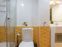 Torredembarra 18 km Tarragonaista: Kodikas kerrostalo "Engelbert". Keskustassa Torredembarra, keskeinen sijainti, 400 m meren rannalta, 400 m rannalta. Yhteiskäytössä: uima-allas kulmikas (käytössä kausiluontoisesti: 23.Kes. - 15.Syy.). Talossa: hissi. Yleinen pysäköinti kadulla. Kauppa, ruokakauppa, supermarket 200 m, ostoskeskus 19 km, ravintola 500 m, baari, leipomo 200 m, kahvila 300 m, jalankulkualue 200 m, … minuutin kävelymatka keskustaan 3, bussipysäkki 300 m, rautatieasema "Renfe Torredembarra" 100 m. Venesatama 1.2 km, tennis 1.5 km, ratsastustalli 1.6 km. Lähettyvillä nähtävyyksiä: Port Aventura 30 km, Aquopolis 35 km, Jungle Trek 9 km. Tunnettu järvi: Bassa de les Olles 85 km, Embalse de Siurana 60 km, Pantano de Foix 33 km. Vaellusreittejä La Musara 56 km, Ronda verda del Baix Gaia 5 km. Kohde soveltuu 2 aikuiselle + 2 lapselle. Omistaja ei hyväksy nuorisoryhmiä. Naapuruston rauhaa kunnioitettava.Interior