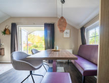 "Boslodge 4", 3-huoneen chalet. Mukavasti sisustettu: olo/ruokailuhuone, ruokapöytä ja TV. Uloskäynti terassille. 1 kahden hengen huone, 1 parisänky. 1 kahden hengen huone, 2 vuodetta. Avoin keittiö (4 keittolevyä, astianpesukone, kahvinkeitin, Kapselit kahvinkeittimeen (Nespresso) lisämaksusta, mikroaaltouuni). Suihku/WC. Lämmitys. Terassi. Terassikalusteita. Käytettävissä: Internet ( Langaton LAN [WLAN] , ilmainen). Huomioitavaa: savuton talo. Savuhälytin.- Laitteet