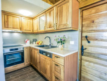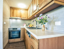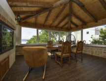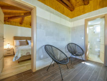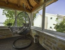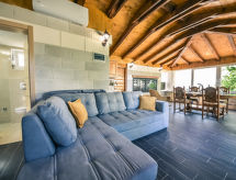 2-huoneen talo, 70 m2, 2 tasossa, suunta lounaaseen. Olo/ruokailuhuone, 30 m2, 1 vuodesohva kahdelle (140 cm, pituus 200 cm), satelliitti TV (litteänäyttö), ilmastointi. Uloskäynti terassille. 1 huone, 1 kapea parisänky (160 cm, pituus 200 cm), suihku/WC. Avoin keittiö (uuni, astianpesukone, 4 keraaminen keittotaso, pakastin, kahvinkeitin). Suihku/WC. Alemmassa kerroksessa: (ulkoportaat) ruokailuhuone, avotakka. Uloskäynti terassille. Terassi 8 m2 osittain katettu, terassi 8 m2, katettu. Käytettävissä: hiustenkuivaaja. Internet ( Langaton LAN [WLAN] , ilmainen).- Laitteet