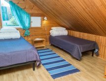 Tahkon laskettelukeskuksen lähellä lomakylässä sijaitseva yksittäinen tilava mökki. Kuopiosta 60 km koilliseen, Syväri-järvi 30 m (pituus 35 km, leveys 10 km), matala, kova hiekkapohja, yhteisranta, veneet yhteiskäytössä. Hirsirakennus 1996. Alakerrassa 2 makuuhuonetta 2 vuodetta kummassakin, tilava tupakeittiö, olohuone, WC, pesuhuone, sauna ja avokuisti. Yläkerrassa 2 makuuhuonetta 2 vuodetta kummassakin, aulassa 3 levitettävää vuodesohvaa, WC ja parveke. Mökki sijaitsee lomakylässä, jossa mökkejä yhteensä 10 kpl. Ravintola Jokke's Stube sekä Luomupuoti lomakylän keskellä. Omistajalta lainattavissa nettiyhetys (Mokkula), jos varauksen alkuun on yli viikko. Mökeillä on yhteinen ranta, jossa on matala, kova hiekkapohja. Lomakylässä on hyvät palvelut ja aktiviteettimahdollisuudet. Kalastuslupia voi ostaa esimerkiksi Pyörä-Manniselta Nilsiän keskustasta. Tenniskentät 2,5 km ja 9 km. Golfkentät 3 km. Tahko-Spa-monitoimihalli (mm. kylpylä, keilahalli) 3 km.- Laitteet