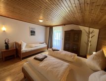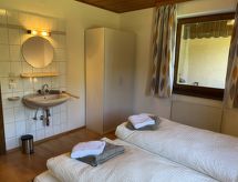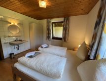 "Haus Sigfried", 5-huoneen talo, 150 m2, 2 tasossa. Avara ja vaalea, osittain peruskorjattu vuonna 2022, viihtyisästi ja paljon puuta sisustettu: sisääntulo. 1 kahden hengen huone, pesuallas. Olohuone, ruokailunurkkaus, satelliitti TV, litteänäyttö ja kaakeliuuni. Uloskäynti puutarhaan, terassille. Suuri keittiö (uuni, astianpesukone, 4 keraaminen keittotaso, leivänpaahdin, vedenkeitin, mikroaaltouuni, kahvinkeitin), ruokapöytä. Erillinen WC. Yläkerrassa: 1 kahden hengen huone, pesuallas. 1 kahden hengen huone, pesuallas. Uloskäynti parvekkeelle. 1 huone, 1 vuode ja 1 parisänky. Uloskäynti parvekkeelle. Suihku/WC. Lattialämmitys. Parkettilattiat. Iso terassi 25 m2, iso puutarha 100 m2. Terassikalusteita, parvekekalusteita, puutarhagrilli (liikuteltava), lepotuoleja (3). Kaunis näkymä maaseudulle. Käytettävissä: syöttötuoli, lastensänky alle 2 vuotiaalle. Huomioitavaa: savuton talo. 1 lemmikki/koira sallittu. Savuhälytin, palosammutin. Kun loma-asunnossa majoittuu vähemmän kuin sallittu enimmäishenkilömäärä, kaikki talon osat eivät ole käytettävissä.- Laitteet