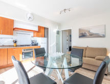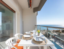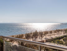 2-huoneen huoneisto, 35 m2, suunta lounaaseen. Kohde soveltuu 2 aikuiselle + 2 lapselle. Vaalea, mukavasti ja uudenaikaisesti sisustettu: olo/ruokailuhuone, 1 vuodesohva kahdelle (140 cm, pituus 190 cm), ruokapöytä ja satelliitti TV. Uloskäynti terassille, suunta etelään ja suunta länteen. 1 huone, 1 kapea parisänky (140 cm, pituus 190 cm), ilmastointi ja ilmalämmitys. Uloskäynti parvekkeelle. Avoin keittiö (4 keittolevyä, uuni, astianpesukone, leivänpaahdin, mikroaaltouuni, pakastin, kahvinkeitin). Suihku, erillinen WC. Terassi 8 m2, etelään ja länteen, pieni terassi 4 m2, pohjoiseen ja, itään. Terassikalusteita. Erittäin kaunis panoraamanäkymä merelle. Käytettävissä: pesukone, silitysrauta, hiustenkuivaaja. Internet ( Langaton LAN [WLAN] ). Pysäköintipaikka n:o 16. Huomioitavaa: savuton huoneisto. TV vain FR. Ei hissiä. HUTG015628- Ominaisuudet majoitus