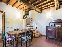 Residenssi "Il Borghetto". 7 km keskustasta Barberino di Mugello, 38 km keskustasta Firenze, korkea sijainti kukkulalla, 7 km järven rannalta. Yhteiskäytössä: piha/puutarha (aidattu), uima-allas (12 x 6 m, syvyys 100 - 220 cm, käytössä kausiluontoisesti: 05.Tou. - 28.Syy.). Ulkosuihku, ulkokalusteita, ulkogrilli, lasten leikkipaikka (liukumäki, keinu). Talossa: pesukone (yhteiskäytössä, lisämaksu), lämmitys maksettava paikalla, lämmitys on käytettävissä ainoastaan alkaen 01.11. päättyen 15.04.. Pysäköintipaikka talon luona. Ruokakauppa 500 m, supermarket 7 km, uimaranta "Lago di Bilancino" 7 km. Golfkenttä (18 reikää) 18 km. Lähettyvillä nähtävyyksiä: Outlet Barberino 14 km, Autodromo internazionale 15 km, Scarperia 20 km, Vicchio 28 km. Huomioitavaa: Kuva on tyyppiesimerkki talosta. Tässä lomatalossa on useampia huoneistoja vuokrattavissa.Interior