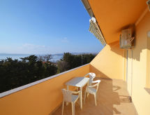 2-huoneen huoneisto, 32 m2, 1. kerroksessa, suunta lounaaseen. Olo/ruokailuhuone, 14 m2, 1 vuodesohva kahdelle (130 cm, pituus 200 cm), satelliitti TV (litteänäyttö), ilmastointi. Uloskäynti terassille. 1 huone, 1 parisänky (2 x 80 cm, pituus 200 cm). Avoin keittiö (4 keittolevyä, uuni, pakastin). Suihku/WC. Terassi 15 m2. Terassikalusteita. Vähäinen näkymä merelle. Käytettävissä: Internet ( Langaton LAN [WLAN] , ilmainen).- Laitteet