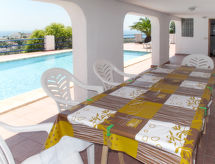 Kolmen perheen talo "Karina". Lomatalossa 3 huoneistoa. Alueen Peñiscola yläpuolella, alueella Las Atalayas, 2.5 km keskustasta Peñiscola, 130 km keskustasta Valencia, 130 km keskustasta Tarragona, rinteessä, 2.5 km meren rannalta. Yhteiskäytössä: tontti 700 m2 jossa istutuksia, uima-allas (11 x 5 m, käytössä kausiluontoisesti: 01.Kes. - 15.Lok.). Suihku/WC uima-allasalueella, ulkosuihku, terassi, ulkogrilli, yleinen pysäköinti kadulla. Supermarket 1.5 km, ravintola 1.5 km, hiekkaranta 2.5 km.Interior