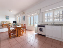 "Karina (PEA112)", 3-huoneen huoneisto, 80 m2, alemmassa kerroksessa. Vaalea, käytännöllisesti sisustettu: olohuone, satelliitti TV, stereosoitin, sähkölämmitys ja ilmastointi. Uloskäynti terassille. 1 huone, 2 vuodetta. 1 huone, 2 vuodetta ja 1 kokoontaitettava sänky. Avoin keittiö (pienoisuuni, 4 kaasuhella, leivänpaahdin, pakastin, kahvinkeitin), ruokapöytä. Uloskäynti terassille. Suihku/WC. Terassi 30 m2. Terassikalusteita, varasto. Panoraamanäkymä merelle. Käytettävissä: pesukone, syöttötuoli, lastensänky. Internet ( Langaton LAN [WLAN] , ilmainen). Huomioitavaa: savuton huoneisto. Enintään 1 lemmikki/koira sallittu. AT-030250-CS- Laitteet