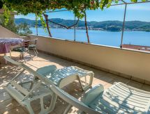 2-huoneen huoneisto, 65 m2, 1. kerroksessa. Olo/ruokailuhuone, 1 vuodesohva kahdelle (180 cm, pituus 200 cm), satelliitti TV. Uloskäynti parvekkeelle. Sisääntulo, ilmastointi. 1 huone, 1 kapea parisänky (160 cm, pituus 200 cm). Uloskäynti parvekkeelle. Avoin keittiö (2 keittolevyä, uuni, 2 kaasuhella, vedenkeitin, mikroaaltouuni, kahvinkeitin). Suihku/WC. Ilmastointilaite (lisämaksu). Parveke 20 m2. Parvekekalusteita. Kaunis näkymä merelle. Käytettävissä: Internet ( Langaton LAN [WLAN] , ilmainen). Huomioitavaa: savuton huoneisto. 1 lemmikki/koira sallittu. Palosammutin.- Laitteet
