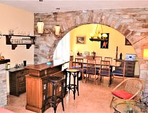 5-huoneen talo, 150 m2, 2 tasossa. Maalaistyylisesti ja viihtyisästi sisustettu: olo/ruokailuhuone, 34 m2, avotakka, satelliitti TV, kansainvälisiä TV-kanavia ja DVD. 1 huone 17 m2, 1 kapea parisänky (160 cm), kylpy/bidet/WC. 1 huone 13 m2, 2 vuodetta (90 cm, pituus 190 cm), kylpy/bidet/WC. Keittiö (uuni, astianpesukone, 4 keraaminen keittotaso, leivänpaahdin, vedenkeitin, mikroaaltouuni, pakastin, kahvinkeitin). Uloskäynti puutarhaistumapaikalle. Erillinen WC. Öljylämmitys. Alemmassa kerroksessa: (ulkoportaat) 1 huone 10 m2, 2 vuodetta (90 cm, pituus 190 cm), kylpy/bidet/WC ja sähkölämmitin. Uloskäynti puutarhaan. (ulkoportaat) 1 huone 7 m2, 1 kapea parisänky (140 cm, pituus 190 cm), suihku/WC ja sähkölämmitin. Uloskäynti puutarhaan. Terassikalusteita, puutarhagrilli, lepotuoleja. Kaunis näkymä merelle ja vuorille. Käytettävissä: pesukone, tallelokero, silitysrauta, lastensänky alle 2 vuotiaalle. Internet ( Langaton LAN [WLAN] , ilmainen). Pysäköintipaikka, autotalli (2 autot). Ei kulkua sisäkautta kerrosten välillä. Keskuslämmitys vain 1. kerroksessa. HUTG001292- Aktiviteetit lähistöllä
