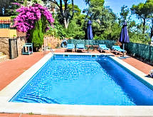 Urb. Sa Fontansa: Kodikas talo "La Chumbera". Alueen laidalla, 700 m keskustasta Begur, rauhallinen, aurinkoinen sijainti, 3 km meren rannalta, sijaitsee tien varrella. Yksityiskäytössä: piha/puutarha jossa nurmikkoa 90 m2 kukkia, uima-allas kulmikas (4 x 8 m, syvyys 180 - 100 cm, käytössä kausiluontoisesti: 01.Huh. - 30.Lok.). Ulkosuihku, istumapaikka (20 m2), pergola (27 m2), terassi (122 m2), ulkokalusteita, ulkogrilli, uima-altaan huoltaa omistaja/puutarhuri. Portaat (7 askelmaa) talolle. Supermarket 600 m, ravintola 700 m, baari 600 m, rautatieasema "Flaçà" 30 km, hiekkaranta "Sa Riera" 3.3 km, kiviranta 6.3 km. Golfkenttä (36 reikää) 17 km, tennis 2 km, ratsastustalli 1 km.Interior