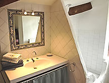 6-huoneen talo, 220 m2, 3 tasossa. Ruokailuhuone, 48 m2, avotakka ja radio. Uloskäynti terassille. Salonki, 32 m2, avotakka ja TV. Keittiö (4 keittolevyä, uuni, astianpesukone, mikroaaltouuni, pakastin, kahvinkeitin). Suihku, erillinen WC. Yläkerrassa: 1 huone, 2 vuodetta (90 cm, pituus 190 cm). 1 huone, 2 vuodetta (80 cm), kylpy/WC. 2. kerroksessa: 1 huone, 2 vuodetta (80 cm), suihku/WC. Terassikalusteita, puutarhagrilli, lepotuoleja (8). Näkymä. Käytettävissä: pesukone, syöttötuoli, lastensänky alle 2 vuotiaalle. Internet ( Langaton LAN [WLAN] , ilmainen). Huomioitavaa: puhelin vain tuleville puheluille. 1 lemmikki/koira sallittu. Savuhälytin. 1-huoneen huoneisto: avokeittiö (mikroaaltouuni, astianpesukone, pesukone, pieni jääkaappi) sekä ruokapöytä. Makuuhuone erillisillä sängyillä. Kylpy/WC.- Ominaisuudet majoitus
