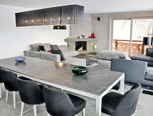 "Le Refuge 1", 6-huoneen huoneisto kahdessa tasossa, 200 m2, 1. kerroksessa. Avara, tasokkaasti sisustettu: iso olo/ruokailuhuone, panoraamaikkuna suunta pohjoiseen ja suunta länteen, avotakka. Uloskäynti parvekkeelle. Suuri, avoin keittiö (uuni, astianpesukone, 6 induktioliesi, mikroaaltouuni, pakastin, kahvinkeitin, Kapselit kahvinkeittimeen (Nespresso) lisämaksusta, raclettegrilli, fonduesetti (juusto)). Alemmassa kerroksessa: 1 iso huone, vaatekomero, 1 kapea parisänky (200 cm, pituus 200 cm), erillinen WC, suihku ja kaksoispesuallas. Uloskäynti terassille. Yläkerrassa: sisääntulo. 1 huone, 1 kapea parisänky (180 cm, pituus 200 cm), kylpy/WC. Uloskäynti parvekkeelle, suunta länteen. 1 huone, 1 kapea parisänky (180 cm, pituus 200 cm), suihku/WC. 1 lastenhuone, 2 x 2 kerrossänky (90 cm, pituus 190 cm). Uloskäynti parvekkeelle, suunta länteen. Salonki, kaapeli TV ja DVD. Suihku/WC, erillinen WC. Iso parveke, pohjoiseen ja länteen. Käytettävissä: pesukone, kuivausrumpu, syöttötuoli, lastensänky, hiustenkuivaaja. Internet ( Langaton LAN [WLAN] , ilmainen). Autotalli (2 autot). Huomioitavaa: soveltuu perheille. Savuton huoneisto. 4 sisäänpääsyä SPA Bissesiin sisältyy vuokrahintaan. Kylpylä on osa 4 Valleys Mer de Glace kokonaisuutta. Käytettävissä: 2 astianpesukonetta, Apple TV iPad, Sonos –äänijärjestelmä.- Ominaisuudet majoitus