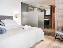Pieni, kaunis residenssi "Le Refuge - Mer de Glace", rakennusvuosi 2016. Residenssissä 4 huoneistoa. Keskustassa, rinteessä, suunta pohjoiseen. Lomatalon alueella: sauna, kuntosali, hieronta (lisämaksu). Höyrykylpy, poreallas, rentoutumistila yhteiskäyttöinen kuntoilutila 20 m (lisämaksu), hissi, varasto suksille, keskuslämmitys, kenkäkuivuri. Ajotie talolta. Lumiketjuja suositellaan talvella. Supermarket 80 m, ravintola 20 m, kylpylä "Spa des Bisses Hotel 4 Vallées" 20 m. Golfkenttä 18 km, tennis 80 m, hiihtourheilukeskus, hiihtobussipysäkki, jääkenttä 50 m. Huomioitavaa: nuorisoryhmät kysyttävä erikseen. Ilmainen hiihtobussi. Loma-asunto viitenro: CH1961.421.2 sijaitsee samalla tontilla. Kylpylä auki 23.6.-30.9.2018 klo 9-21, 1.10.-11.11.2018 klo 11-20, 15.12.2018-31.3.2019 klo 9-21.Interior