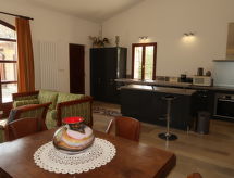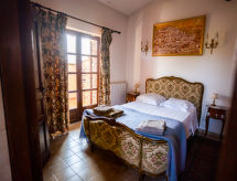 7-huoneen huvila, 290 m2, 2 tasossa. Avara, mukavasti ja hyvällä maulla sisustettu: sisääntulo. Iso olohuone, avotakka, satelliitti TV, CD ja DVD. Uloskäynti terassille. Ruokailuhuone. Olo/makuuhuone, 1 vuodesohva kahdelle, pienoiskeittiö, baari ja satelliitti TV. Uloskäynti terassille. 3 huonetta, kaikissa huoneissa, 1 kapea parisänky (140 cm). Keittiö (uuni, astianpesukone, 4 induktioliesi, mikroaaltouuni, kahvinkeitin), ruokapöytä. Uloskäynti terassille. Kylpyhuone, suihku/WC, erillinen WC, kaksoispesuallas. Yläkerrassa: 1 huone, 1 kapea parisänky (140 cm), kylpyhuone ja erillinen WC. Uloskäynti parvekkeelle. Parveke 8 m2, terassi 70 m2 osittain katettu, terassi 50 m2. Terassikalusteita, puutarhagrilli, lepotuoleja (8). Käytettävissä: pesukone, silitysrauta. Internet ( Langaton LAN [WLAN] , ilmainen). Huomioitavaa: savuton talo. 2 lemmikkiä/koiraa sallittu. Savuhälytin. Kun loma-asunnossa majoittuu vähemmän kuin sallittu enimmäishenkilömäärä, kaikki makuuhuoneet eivät ole käytettävissä.- Ominaisuudet majoitus