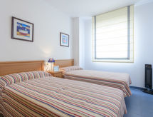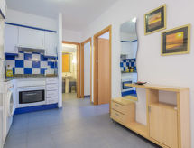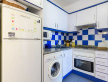 "Mar de Oropesa II", 3-huoneen huoneisto, 55 m2, 3. kerroksessa. Käytännöllisesti ja mukavasti sisustettu: olo/ruokailuhuone, ruokapöytä, TV, litteänäyttö, ilmastointi ja ilmalämmitys. Uloskäynti terassille. 1 huone, 1 kapea parisänky (150 cm, pituus 190 cm), tuuletin. 1 huone, 2 vuodetta (90 cm, pituus 190 cm). Avoin keittiö (uuni, 4 keraaminen keittotaso, leivänpaahdin, mikroaaltouuni, pakastin). Kylpy/bidet/WC. Terassi. Terassikalusteita. Näkymä paikkakunnalle. Käytettävissä: pesukone, silitysrauta, syöttötuoli, lastensänky, hiustenkuivaaja. Internet ( Langaton LAN [WLAN] , ilmainen). Pysäköintipaikka n:o 67 talon vieressä. Huomioitavaa: soveltuu perheille. Savuton huoneisto. VT-41035-CS- Laitteet
