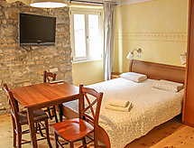 1-huoneen huoneisto, 25 m2, 3. kerroksessa. Yksinkertaisesti sisustettu: olo/makuuhuone, 1 vuodesohva, 1 parisänky, kaapeli TV ja ilmastointi. Keittiö/oleskelutila (4 keraaminen keittotaso, pakastin), ruokapöytä. Suihku/WC. Lämmitys. Käytettävissä: Internet ( Langaton LAN [WLAN] ).- Laitteet