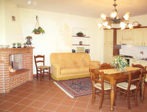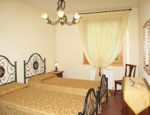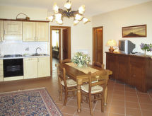 "Margherita", 3-huoneen huoneisto, 75 m2, sisääntulokerroksessa. Kohde soveltuu 4 aikuiselle. Vaalea, hyvällä maulla ja viihtyisästi sisustettu: olo/ruokailuhuone, 1 vuodesohva, avotakka, ruokapöytä ja satelliitti TV. Uloskäynti puutarhaan. 1 huone, 1 parisänky ja suihku/bidet/WC. 1 huone, 2 vuodetta. Avoin keittiö (uuni, astianpesukone, leivänpaahdin, kahvinkeitin). Suihku/bidet/WC. Kaasulämmitys (lisämaksu). Luonnonkivilattiat. Puutarhaistumapaikka osittain katettu. Terassikalusteita, puutarhagrilli, lepotuoleja. Panoraamanäkymä maaseudulle. Käytettävissä: syöttötuoli, lastensänky alle 2 vuotiaalle. Pysäköintipaikka (2 autoa). Huomioitavaa: soveltuu perheille. Savuton huoneisto. Enintään 1 lemmikki/koira sallittu. Oma sisäänkäynti.- Ominaisuudet majoitus