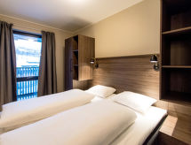 "Myrkdalen (FJH560)", 3-huoneen huoneisto, 50 m2. Uudenaikaisesti sisustettu: olo/ruokailuhuone, ruokapöytä ja TV. 1 huone, 2 vuodetta. 1 huone, 1 x 1 kerrossänky (75 cm, pituus 200 cm), 1 parisänky (120 cm, pituus 200 cm). Avoin keittiö (astianpesukone, 4 keraaminen keittotaso, kahvinkeitin). Suihku/WC. Lattialämmitys. Parkettilattiat. Parveke tai puutarhaistumapaikka. Parvekekalusteita. Panoraamanäkymä vuorille. Käytettävissä: lastensänky. Huomioitavaa: savuton huoneisto.- Laitteet