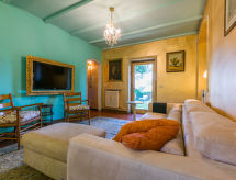 5-huoneen paritalohuoneisto, 180 m2, 2 tasossa. Mukavasti ja hyvällä maulla sisustettu: olo/makuuhuone, 1 vuodesohva kahdelle. Uloskäynti puutarhaan. Suuri keittiö (uuni, astianpesukone, Kaasuhella, 4 kaasuhella, leivänpaahdin, vedenkeitin, mikroaaltouuni, pakastin, kahvinkeitin), ruokapöytä, avotakka ja TV. Erillinen WC. Puulämmitys. Yläkerrassa: 1 kahden hengen huone, 1 parisänky (170 cm), ilmastointi. 1 huone, 2 vuodetta ja ilmastointi. 1 kahden hengen huone, 1 parisänky (160 cm), ilmastointi. 2 suihkua/bidettä/WC:tä. Iso puutarhaistumapaikka osittain katettu, lehtimaja. Terassikalusteita, lepotuoleja. Käytettävissä: silitysrauta, syöttötuoli, lastensänky, hiustenkuivaaja. Internet ( Langaton LAN [WLAN] , ilmainen). Enintään 1 lemmikki/koira sallittu.- Laitteet