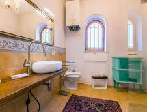 Yhden perheen talo "Ninfea", 2 kerroksinen, toispuolinen lisäsiipi, puiden ympäröimänä. Alueella Antignano, 5 km keskustasta Livorno, 18 km keskustasta Castiglioncello, hyvä sijainti: aivan keskustassa ja kuitenkin rauhallinen, 3 km meren rannalta. Yksityiskäytössä: tontti 1'000 m2 (aidattu) jossa nurmikkoa ja puita, uima-allas (pystytetty maanpäälle) katseilta suojattu (7 x 3 m, käytössä kausiluontoisesti: 01.Huh. - 31.Lok.), suolaeloktrolyysi-puhdistusjärjestelmä. Ulkosuihku, poreallas, pöytätennis, uima-altaan huoltaa omistaja/puutarhuri. Talossa: pesukone (yhteiskäytössä). Aamiainen mahdollinen (lisämaksu). 100 m pitkä huonokuntoinen ajotie (päällystämätön tie). Pysäköintipaikka (2 autolle). Kauppa 1.5 km, supermarket 3 km, ostoskeskus 8 km, ravintola 1.5 km, rautatieasema "Antignano" 1.5 km, pikkukiviranta "Antignano" 3 km. Lähettyvillä nähtävyyksiä: Pisa 30 km, Lucca 50 km, Firenze 100 km. Omistaja ei hyväksy nuorisoryhmiä. Huomioitavaa: Omistaja asuu erillisessä paritalossa. Omistajalla on yksi koira.Interior