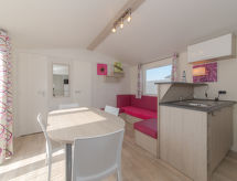 "Kerlinga 2137", 4-huoneen asuntovaunu, 36 m2. Yksinkertaisesti ja käytännöllisesti sisustettu: olo/ruokailuhuone, ruokapöytä, erillinen WC, TV, TV ja kansainvälisiä TV-kanavia (litteänäyttö), sähkölämmitys. 1 kahden hengen huone, 1 parisänky (140 cm, pituus 200 cm). 2 huonetta, kaikissa huoneissa 2 vuodetta (80 cm, pituus 190 cm), sähkölämmitys. Avoin keittiö (astianpesukone, Kaasuhella, 4 kaasuhella, mikroaaltouuni, kahvinkeitin). Suihku. Puutarha 18 m2. Terassikalusteita. Käytettävissä: hiustenkuivaaja. Internet ( Langaton LAN [WLAN] , ilmainen). Pysäköintipaikka (lisämaksu, 1 auto). Huomioitavaa: savuton talo. 1 pieni lemmikki/koira sallittu. Savuhälytin, palosammutin. Vuodeasettelu on joustava. Saatavilla on enemmän vuodemahdollisuuksia kuin enimmäishenkilömäärä, jota ei tästä huolimatta saa ylittää.- Laitteet