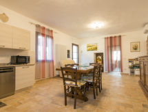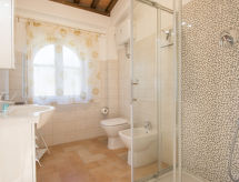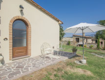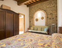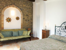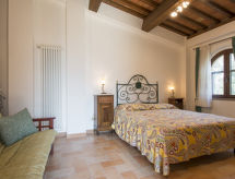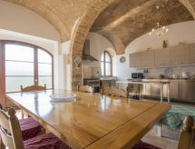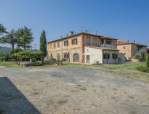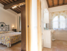 "Podere Sant'Elisa", 7-huoneen paritalohuoneisto, 240 m2, 2 tasossa. Peruskorjattu vuonna 2017, hyvällä maulla sisustettu: avoin olo/makuuhuone, 1 vuodesohva kahdelle, avotakka ja satelliitti TV. Avoin olo/ruokailuhuone, ruokapöytä ja pienoiskeittiö. Uloskäynti terassille. 1 huone, 1 vuode (80 cm), 1 kapea parisänky (160 cm). 2 suihkua/WC:tä. Lämmitys. Yläkerrassa: 1 huone, 1 kapea parisänky (160 cm). 1 huone, 1 kapea parisänky (160 cm), suihku/WC. 1 huone, 3 vuodetta (80 cm). Keittiö/oleskelutila (uuni, astianpesukone, 5 kaasuhella, leivänpaahdin, mikroaaltouuni, pakastin, kahvinkeitin), ruokapöytä. Suihku/WC. Lämmitys, ilmastointilaite, ilmalämmitys. Pieni parveke, iso terassi 170 m2. Terassikalusteita, parvekekalusteita, puutarhagrilli sähkögrilli, lepotuoleja (10), istumapaikka, varasto. Panoraamanäkymä. Käytettävissä: pesukone, silitysrauta, lastensänky. Internet ( Langaton LAN [WLAN] , lisämaksu). Huomioitavaa: savuton huoneisto. Enintään 1 lemmikki/koira sallittu. Ei kulkua sisäkautta loma-asuntojen välillä.- Laitteet